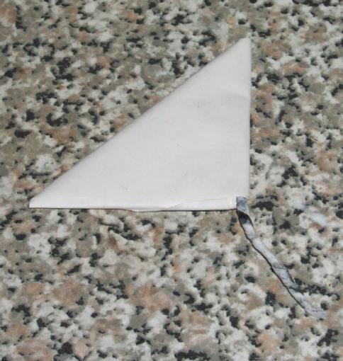 Simple triangle cracker, folded from a 50 mm wide strip of calculator tape, pasted with PVA.