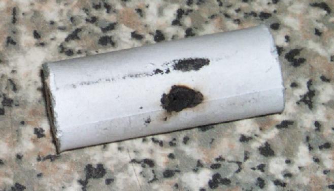 Simple 8mm ID hummer device, 40 mm long. Chiefly to test the new kind of tube, fire resistant, rolled using waterglass (sodium silicate solution) as the glue.