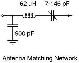 Some maths, coil winding and bench testing later I had a 62 uH base load inductor, ~900 pF of matching shunt capacitance and a polyvaricon to match the transmitter into the antenna. It turned out the polyvaricons I recently purchased had sufficient voltage rating for this application, unlike the one I previously cooked in the C-jig. The loading inductor was close-wound despite this giving is a somewhat reduced Q. When the coil losses were compared to the grounding system losses the improvement in Q at the expense of coil volume was not really worth it. The coil is already quite large ~2" ID, 5" long and has a pretty good Q, the SRF is beyond 12 MHz.