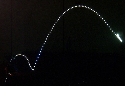 Anyway, onto the pictures. Our first is the long one on the right, it is a almost vertical linear drop with a small bounce. As you can see in the bounce the LED turned away from the camera for part of the path as the zippy box the strobe was is rotated.