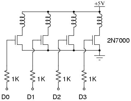 I've also written some software for Linux to help with prototyping with these things. It is very simple, it offers a few commands to print the state of the parallel port registers, toggle or set individual bits, and set entire registers to decimal, hex, or octal values. It is interactive, the ? command gives the command list: