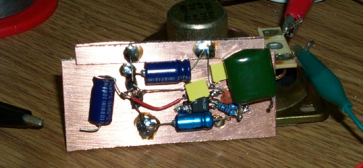 These values in the diagram are from memory, and squinting at the images. They may be a bit off. Nothing it too critical, just be careful of too much gain in the first op-amp, it will oscillate. I haven't shown the decoupling caps in the diagram either, the working model has a 33n from pin 8 to the ground plane, and a 220u across the rails. If you use a bipolar op-amp instead of the LF353 the 33n coupling cap will need to be increased (a lot). Alternatively use DC coupling as I have in a few other implementations.
