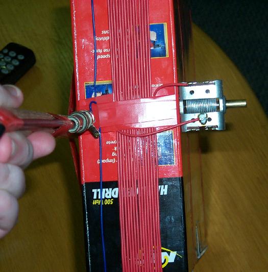 The antenna is a simple coil of (red) wire wound on the box of an NRG hammer drill I purchased some months ago. When I looked around the room for a suitable former the only thing that looked about the right size was the old cardboard box sitting in a pile ready to be dumped.