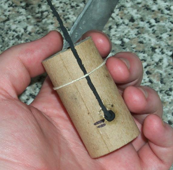 Fused with a piece of Zinc effects blackmatch, glued in place with meal-NC paste. The fused tied with cotton string along the side of the tube for neatness.