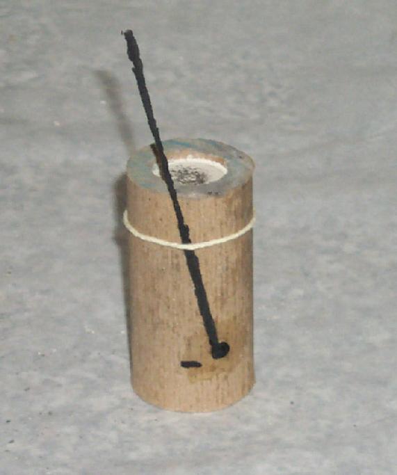 19 mm Stinger, 64 mm long, charged with 20 g of meal with 10% spherical Titanium added. Finished device weighed 43 g.