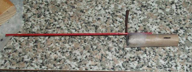 Bamboo stabiliser stick, a little too short for this mass rocket. It was painted red to aid recovery.