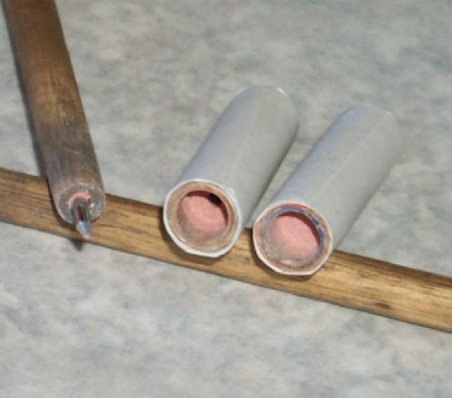 A simple 5 mm ID, 50 mm long thick walled tube rolled from chipboard and 80 gsm photocopier paper.
