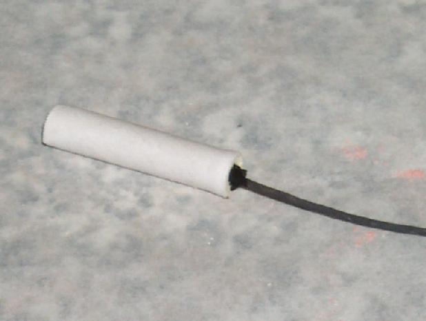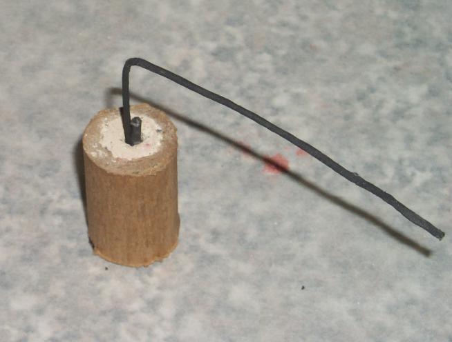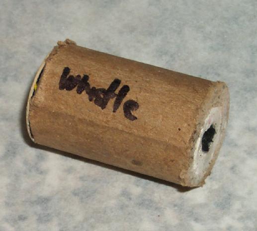 Finally a 5 mm ID whistle, 25 mm long, half-charged with 90% benzoate whistle and 10% -325 mesh spherical Aluminium. This was made to show the effect of Al in whistle in response to a question on the UK rocketry and pyro forum.