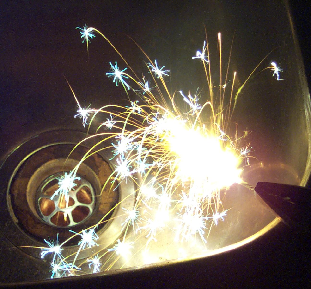 A small quantity of -20 mesh granulated D1 Glitter composition twisted into a 'fuse' with kitchen paper.
