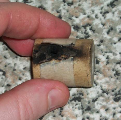 The FeTi driver one had a bit of a hover mid-flight then fell. Pretty poor performance, but it looked nice. FeTi is a very nice metal for spark effects. I noted on recovery that its spin vent was quite eroded and broke through the wall a bit higher than I had desired, reducing its performance.
