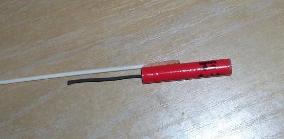 A simple 1/4" bottle rocket; made on Rich Wolter "short" tooling using normal contaminated BP propellant, charged into a pyrotube casing. Once charged above the core, Winokur 20 was rammed instead of BP to make a delay before the MgAl Flash report that filled the remaining space in the tube.
