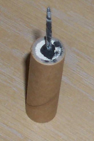 Fused with a meal/NC twisted paper fuse, glued in place with meal/NC laquer paste.
