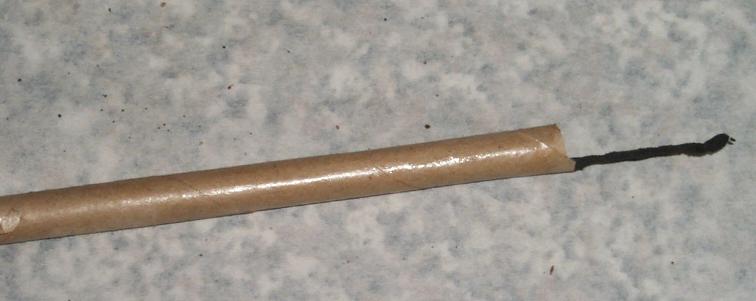 The quickmatch worked as required, the thin match pipe transmitting light and showing the burn progression. It was a little slow, but was clearly accelerating, the length was only 2 feet, which suggests at burn rate of more than 10-20 feet per second