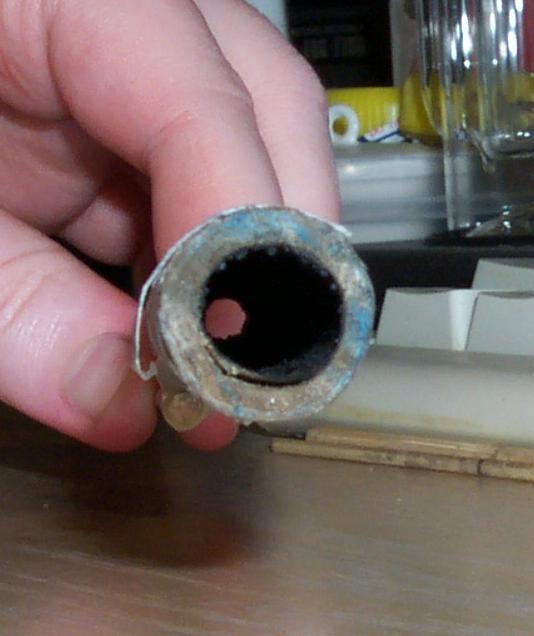 Used my newly treated cat litter clay for the 15 mm long nozzle and 6 mm bulkhead, now with added 5% wax for robust shiny nozzles. A 3 mm passfire hole drilled in the side of clay bulkhead. The 4 mm core went to within 20 mm of the bulkhead