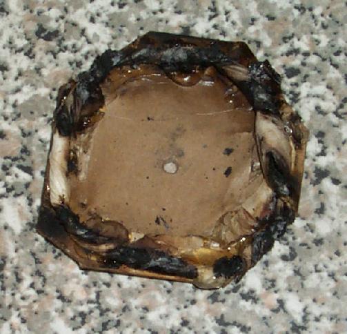 Searching for just how cool and small I can make the powder core and still have it work I tried again with rocket propellant meal and a smaller load, plus no over-wrap.
