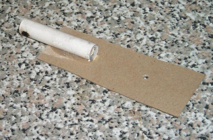 Hot-melt glued to the strip of cardboard used in the last device. This time the device was mounted much further out from the pivot point.