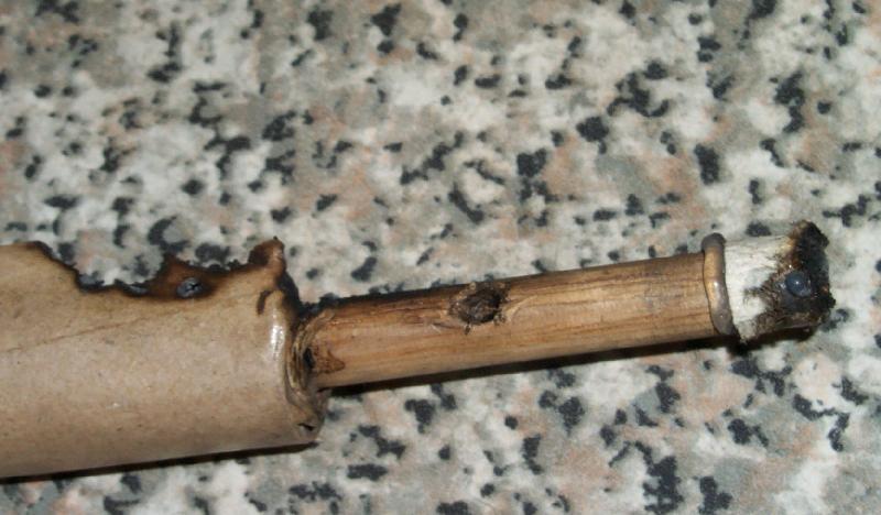 Ramming clay end plugs or using a longer glued dowel/plug in the end may have also prevented the failure.