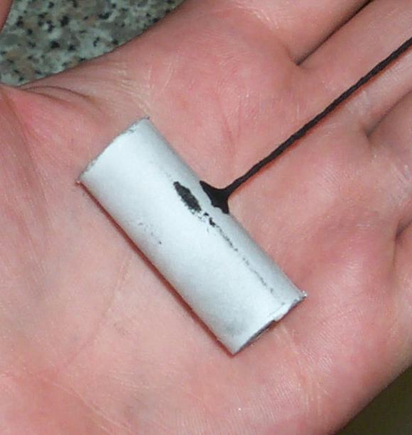 Simple 8mm ID hummer device, 40 mm long. Chiefly to test the new kind of tube, fire resistant, rolled using waterglass (sodium silicate solution) as the glue.